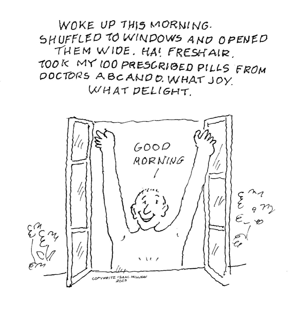 Over the past few months, my father has been churning out a cartoon every day - sometimes two. Initially posting them to the family text chat. They were rudimentary - wobbly text, the penciling was done over and over and the inking sometimes went awry. They told the story of his struggles and fears. We have a dry sense of humor in our family and the cartoons reflected it. Eventually, he refined the cartoons a bit. His old style poked through in the old familiar way he used to lose himself in his work - his survival instincts.